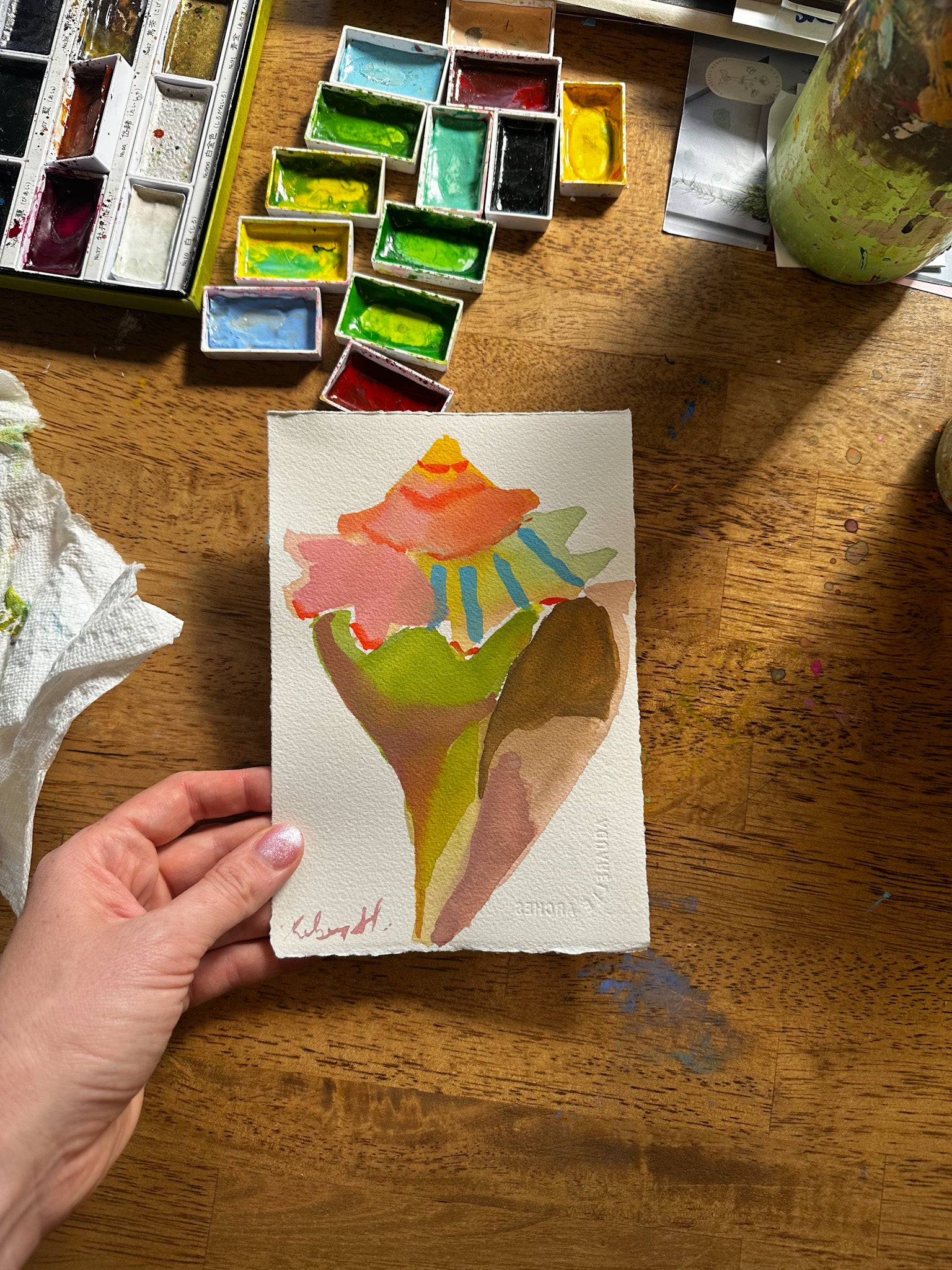 This is an original watercolor painting on fine art paper, about 5.5 x 8 inches.