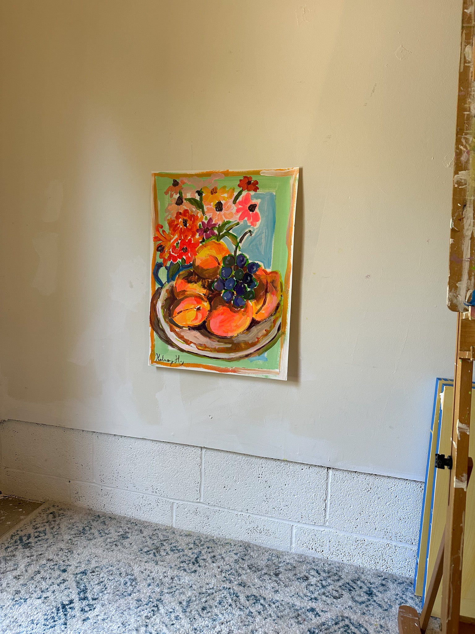 Peaches, Grapes, and Zinnias Still Life - 18 x 24"